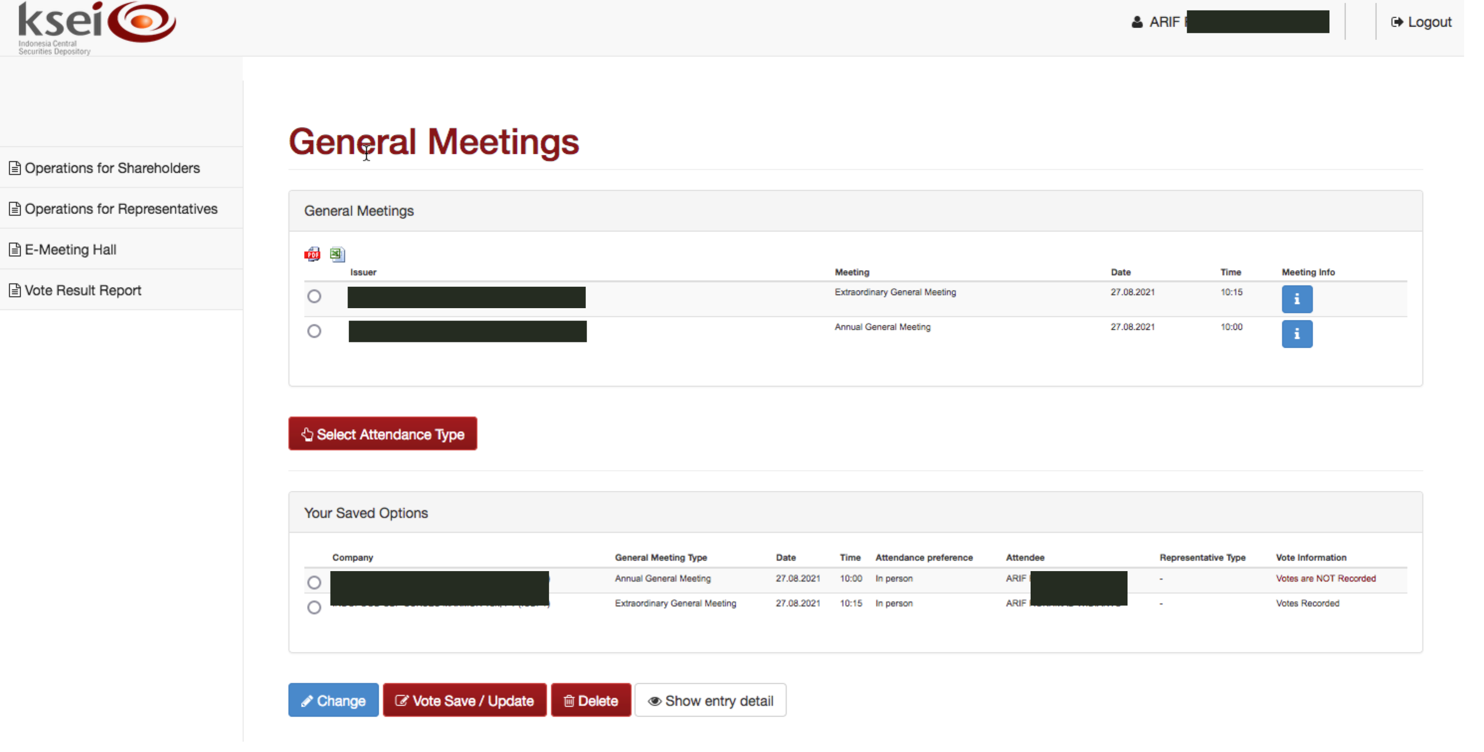 - Operations for Shareholders: untuk pemegang saham yang mengikuti RUPS sendiri