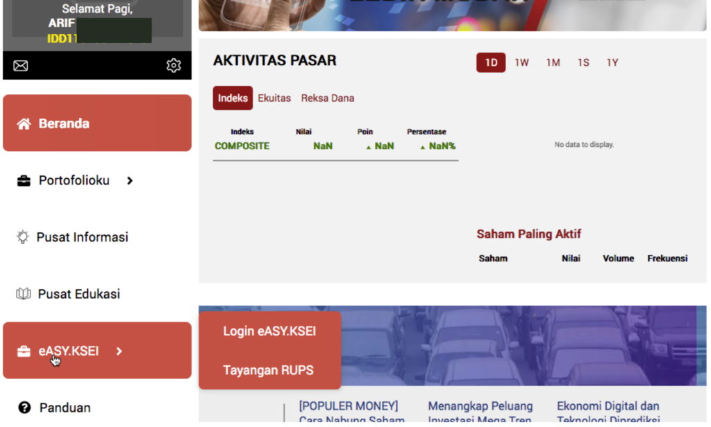 Kedua, setelah Anda berhasil login. Anda telah masuk ke fasilitas AKSES KSEI.