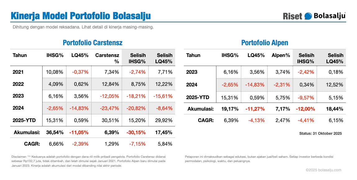 Kinerja Portofolio Carstensz Oktober 2025